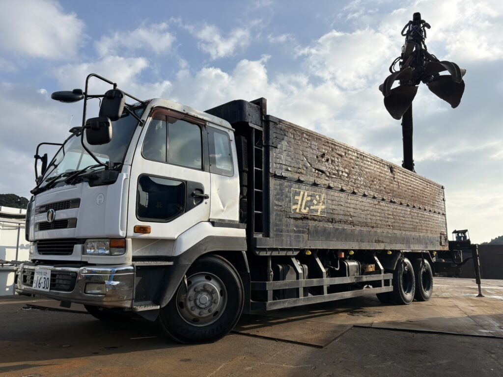 荷台に設置されたアーム【グラップル(爪型アタッチメント)】を装着し操作することで、不定形な物もしっかりと掴んで積み下ろしができます。